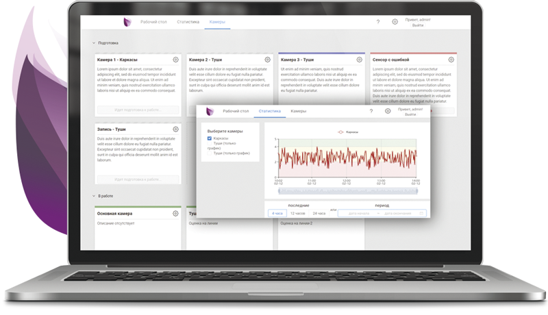 На старте сотрудник обучает систему методам оценки на реальных примерах, затем Etalon.ai сам осматривает и оценивает продукцию. Обучение и управление камерами доступны в web-интерфейсе, там же хранится статистика. Уведомления о важных событиях могут отправляться в мессенджеры.
